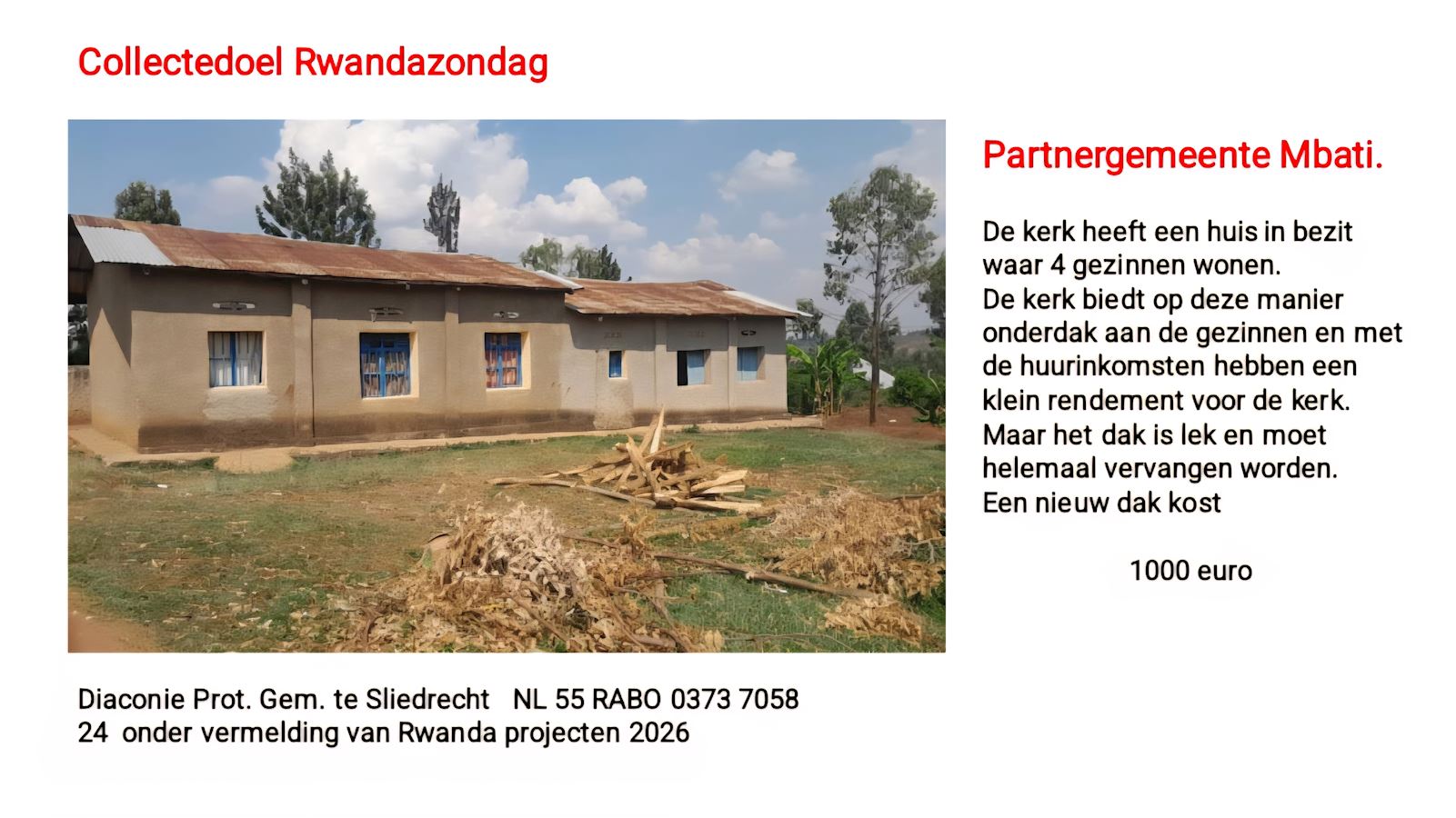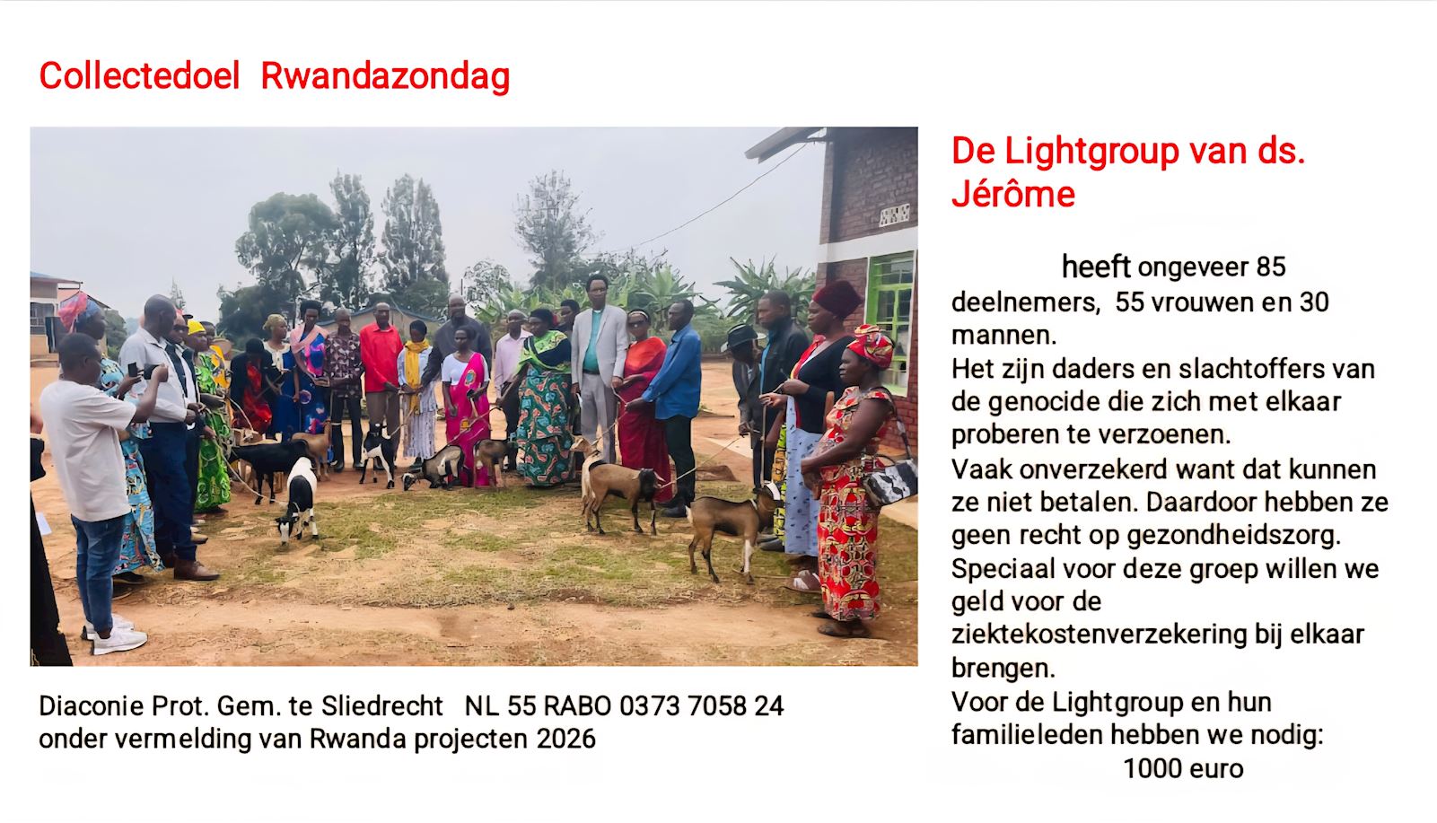 Rwanda Uitwisselingsdienst 9 november. De dienst wordt geleid door Ds. Griselda Aanen- de Vries uit Ottoland Het thema van de dienst is: "Liefde: alles verdraagt ze" ( 1 Cor . 13:17) Klik hier voor de liturgie Medewerking wordt verleend door het koor Niyah Ubuntu uit Hardinxveld-Giessendam Klik hier voor meer info Collectedoel 1 Collectedoel 2 Collectedoel 3 Collectedoel 4 | ||